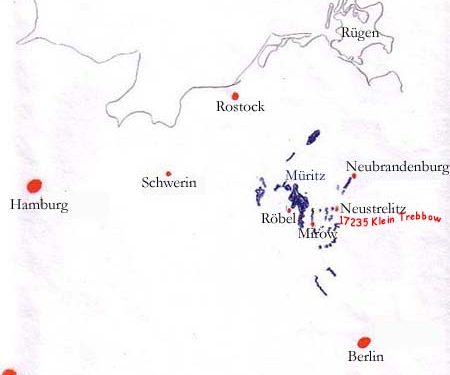 Bei Nutzung eines Navigationsgeräts geben Sie bitte als Postleitzahl 1723‘ oder als Stadt Neustrelitz ein, um eine Verwechslung mit dem Ort ‚Klein Trebbow‘ bei Schwerin zu